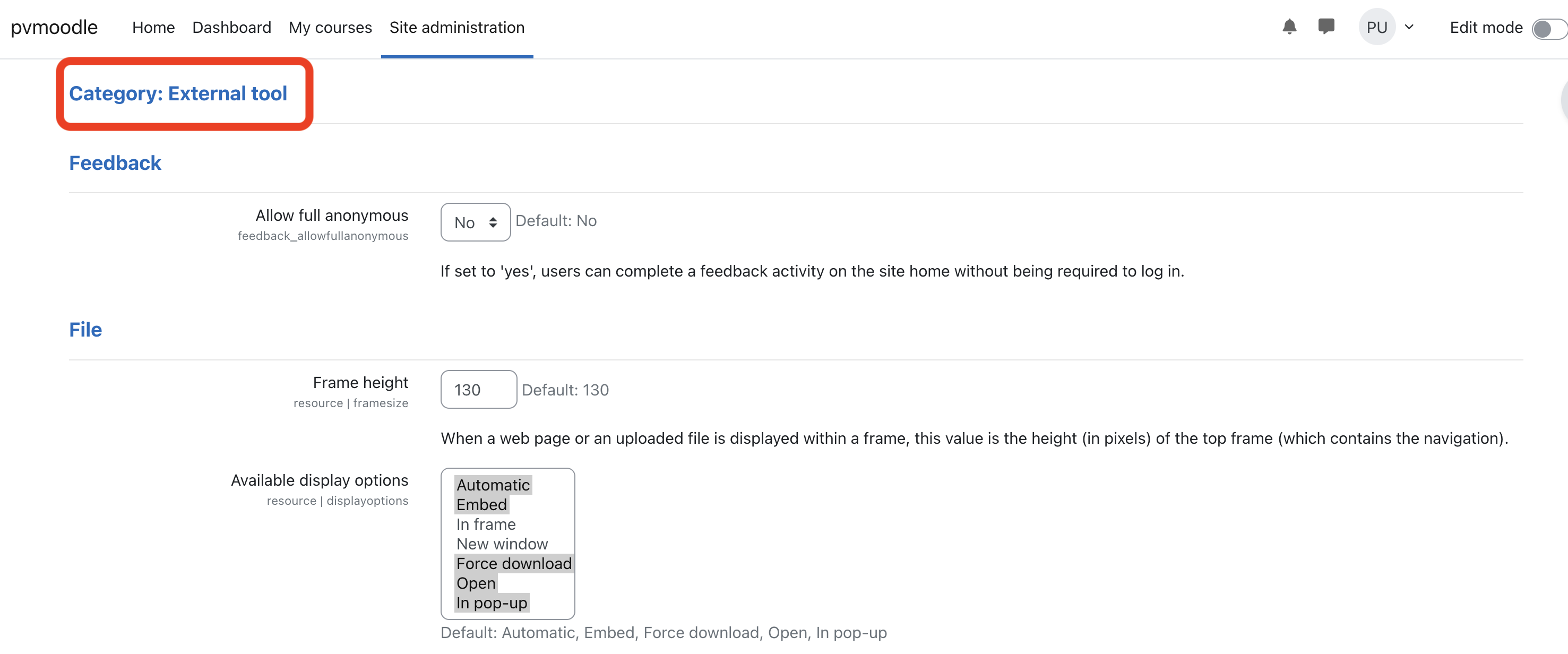 - Tool configuration usage: Show as preconfigured tool when adding an external tool