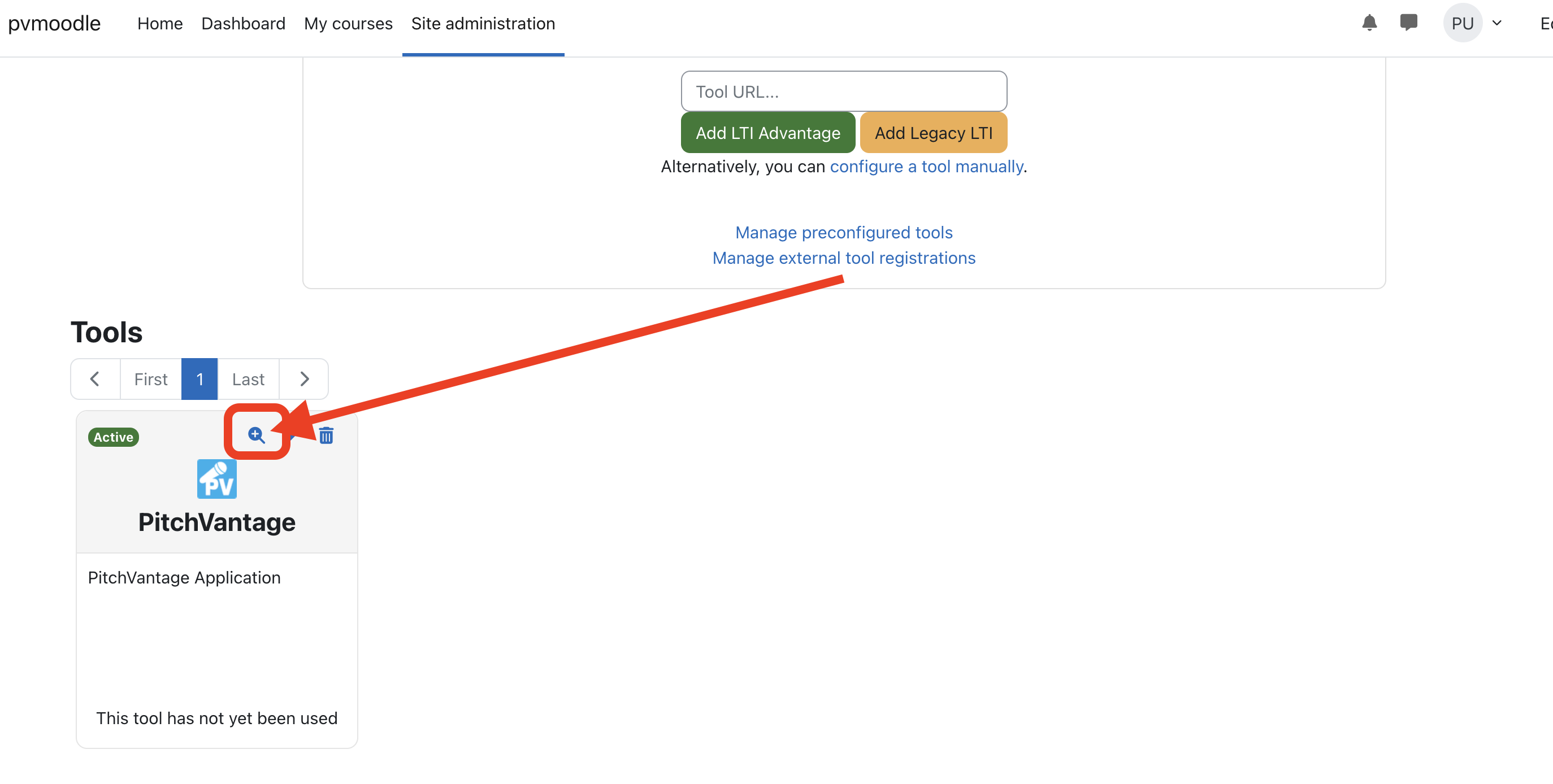 Under Tools, find PitchVantage you just created and click the magnifying glass icon or list icon (older version).